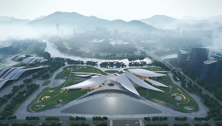 Anji, Zhejiang is known as the "Chinese Bamboo Town" and "Chinese White Tea Town", as well as the birthplace of the concept of "green mountains and clear waters are as valuable as mountains of gold and silver". The Anji Culture and Arts Center is located near Shuiwangshan, in the core launch area of Anji's "Two Mountains" Future Science and Technology City. The project includes six venues, including a grand theater, conference center, cultural center, workers' cultural palace, youth activity center, and art education center, which are gently spread out here, scattered under the green tea fields and "bamboo leaf" roofs, like a landscape of earth art. This will be the city living room where Anji will gather culture, life, art, education, and nature in the future.