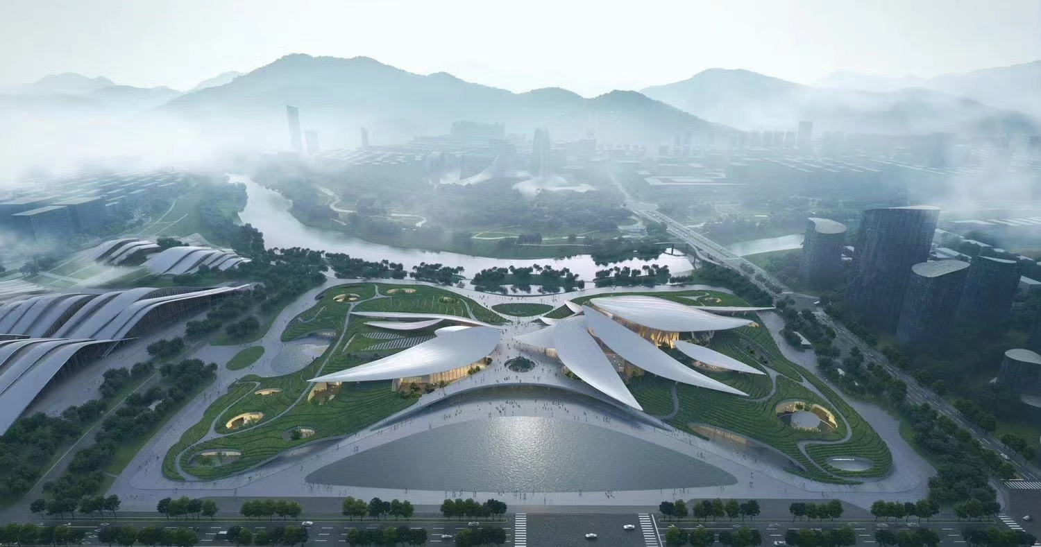 浙江安吉是“中國竹鄉(xiāng)”、“中國白茶之鄉(xiāng)”,也是“綠水青山就是金山銀山”理念的誕生地。安吉文化藝術(shù)中心鄰水望山,位于安吉“兩山”未來科技城的核心啟動(dòng)區(qū),項(xiàng)目所包含的大劇院、會(huì)議中心、文化館、工人文化宮、青少年活動(dòng)中心、藝術(shù)教育中心等六處場(chǎng)館在此平緩鋪開,散落在青綠茶田和“竹葉”屋頂之下,如同一處大地藝術(shù)景觀。這里將是安吉未來聚集文化、生活、藝術(shù)、教育、自然的城市客廳。